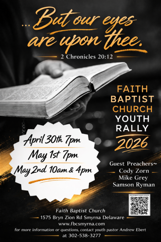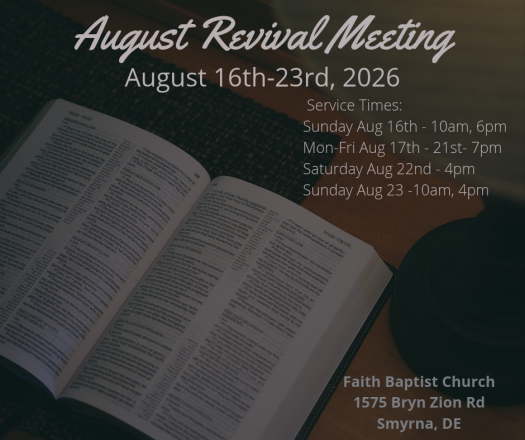 Our Revival meeting begins Sunday August 16, 2026 and ends Sunday August 23, 2026.