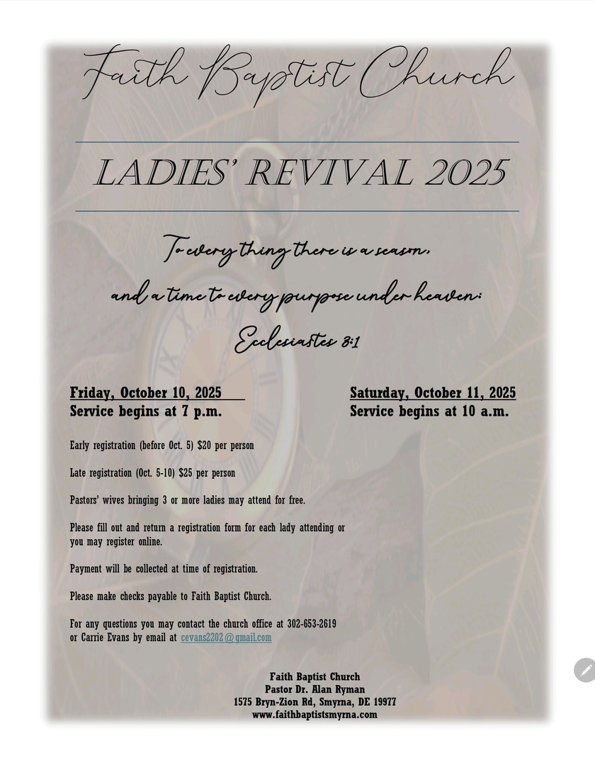 Our Revival meeting begins Sunday August 17, 2025 and ends Sunday August 24, 2025.